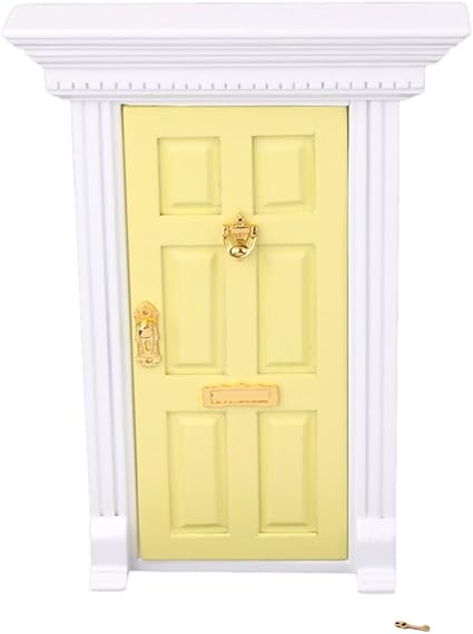 Amazon Com 1 12 Dollhouse Miniature Wooden Yellow Exterior Door 6